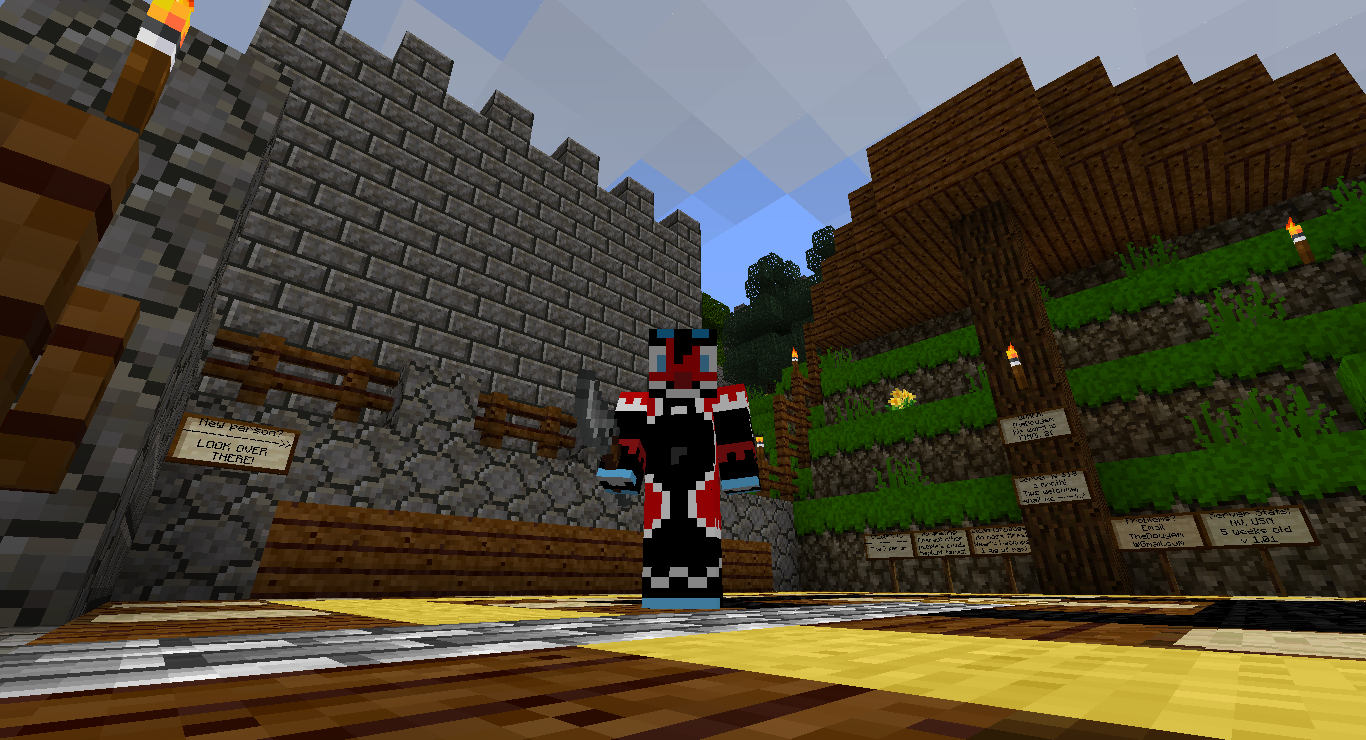 - A preview of the server spawn, as well as the skin for the admin. He looks like an innocent, fluffy dragonthing, sure, but that’s a poleaxe in his hand…